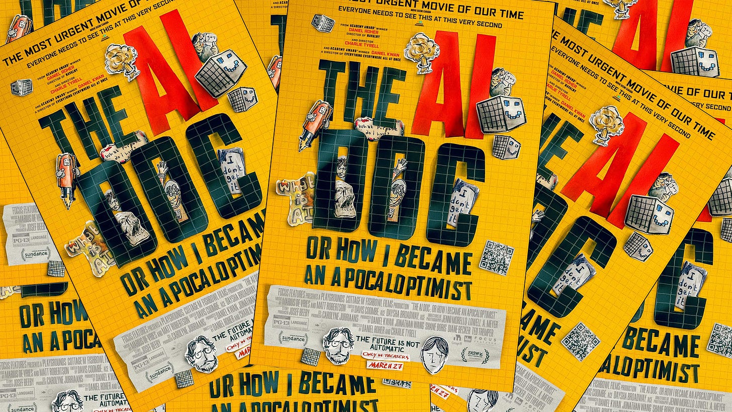 There’s already a buzz growing around The AI Doc : Or How I Became An Apocaloptimist, with some seeing it as one of the more balanced and insightful AI films to come out in some time.1 And, it has to be said, the framing of the film (existential angst around bringing a kid into a crazy AI world) and a A-list cast of interviewees — from Sam Altman and Demis Hassabis to Karen Hao and Tristan Harris — tick a lot of boxes.